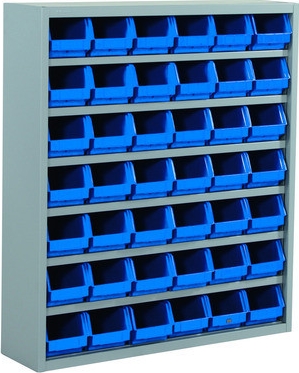 Artikel 712232 leveres med 13 hylder og 84 modulkasser.
