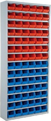 | Reoler med små plastkasser |