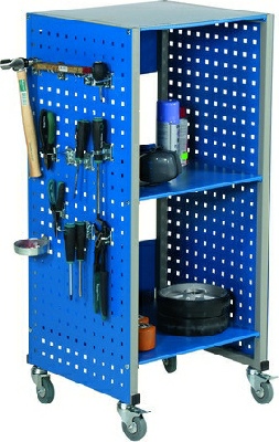 Mobil værktøjsvogn med perforerede værktøjspaneler på siderne